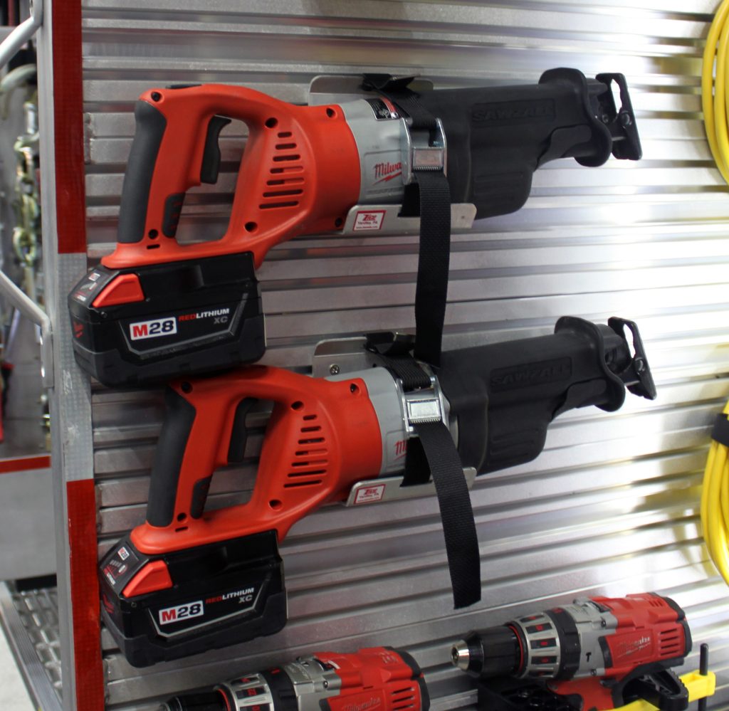 This aluminum bracket can be mounted either horizontally or vertically. The saw is held securely in place with a quick-release strap.